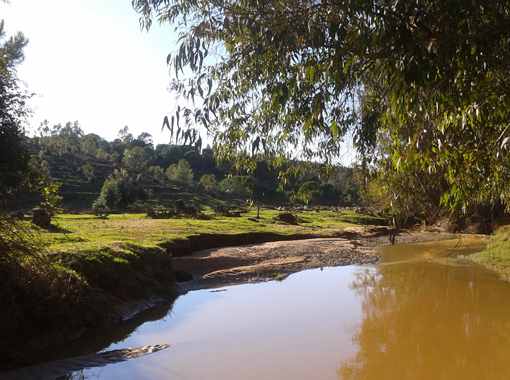 Set in a completely unspoilt and idyllic part of the countryside, 15 minutes outside Ayamonte and bordered by the Arroyo Pedraza (a seasonal stream) on one side and by an ancient and historical cattle droving track (via pecuaria) on another. Well planted with a variety of mature eucalyptus trees and local umbrella pines, the land is also covered in the spring with wild flowers and shrubs such as lavender, cistus, orchids and chamomile. As well as the flora, there is also local fauna and it is a bird watchers paradise with golden orioles, nightingales and bee-eaters all having been seen and heard. The ruin is an unremarkable concrete and rendered brick structure which once served as a rural school for the children of local farmers and agricultural workers.