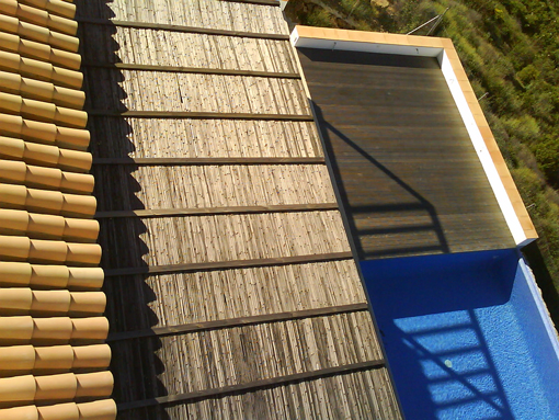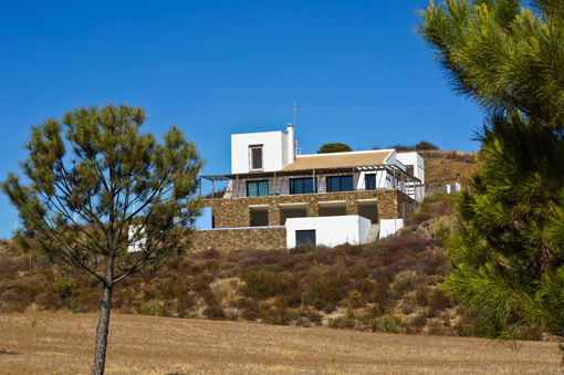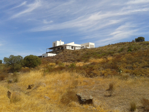 The steep site, which falls six metres from the road to the rear boundary, necessitated that the house was built on several levels. The upper level accommodates a detached guest house and carport which is a full floor above the main house which comprises an open plan kitchen/dining/living room with an open fireplace (essential in the cold and damp Andalucian winter) and three bedrooms. The fourteen metre infinity swimming pool and surrounding terrace is another level lower and finally, below the pool, is the pool house and a fully enclosed septic tank and an "aljibe" which is a traditional water storage cistern to take the water run-off from the house and surrounding terraces and also the purified water from the septic tank, for use in garden watering.