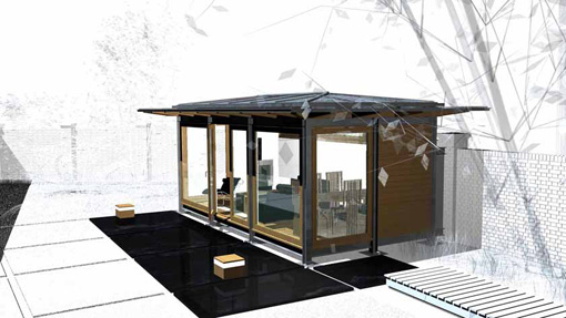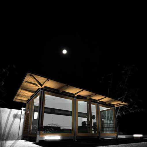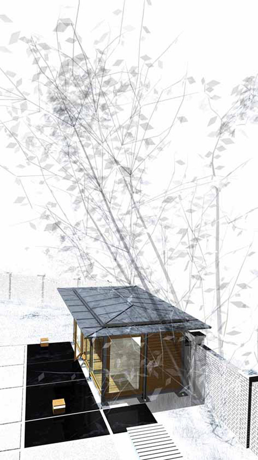 The timber framed garden pavilion was part of a larger project to completely refurbish and update a 1920´s house on the edge of Hamptead Heath in London. As well as the house, the garden was also redesigned and enclosed within a traditional, high, garden wall, built from hand-made bricks, which hides the new pavilion from the road.