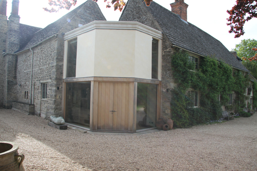 The design for this modern replacement to a less than noteworthy 19th century link block between two wings of a Grade II listed 14th century manor house in Oxfordshire was, initially, thought to be slightly controversial but, ultimately, received the support of the local planning authority and English Heritage and was subsequently given planning approval and completed in 2012.