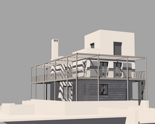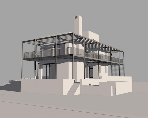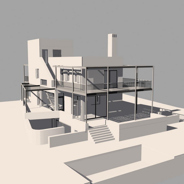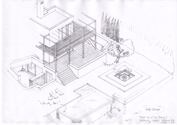 A holiday home on the edge of a golf course in western Andalucia for a family who spend most of the year in the middle east. The steel frame surrounding the house gives partial protection from the harsh summer sun with the insertion of a combination of vertical screens and horizontal awnings. The infinity pool borders the golf course and sits within a large terraced area, set half a level below the living floor of the house, which also incorporates a fire-pit.